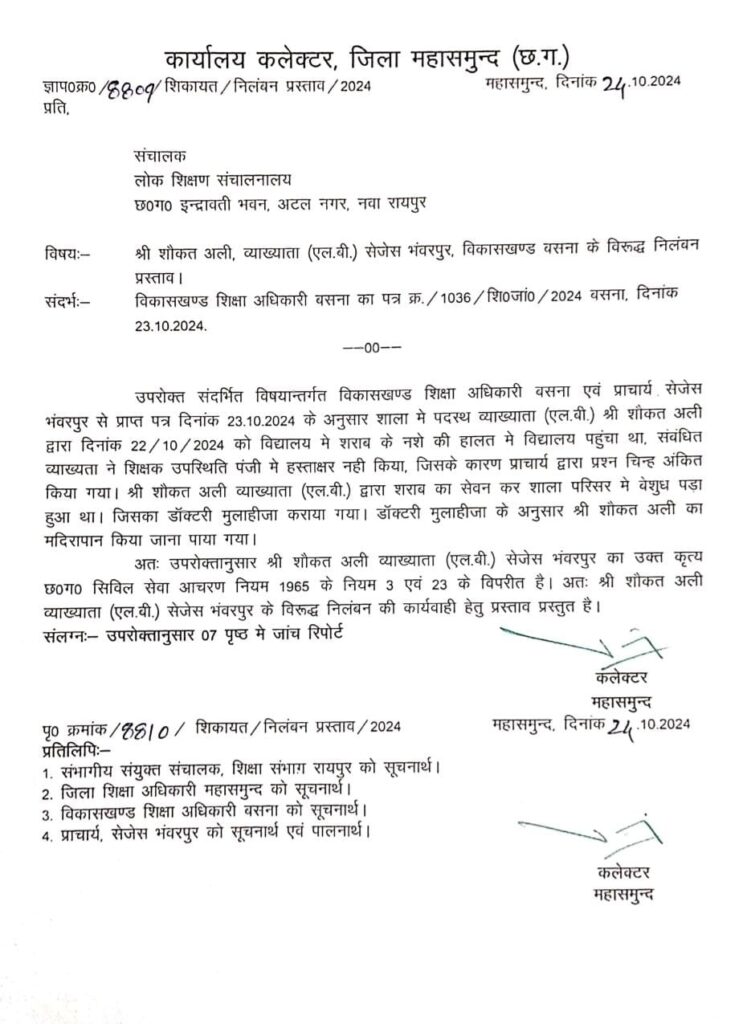 महासमुंदबसना भंवरपुर क़े पियक्कड गुरूजी को निलंबित करने का प्रस्ताव शराब पीकर...