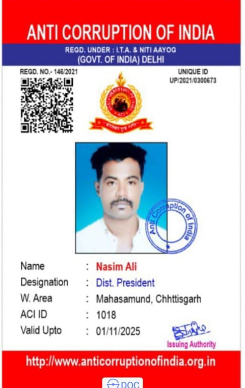 महासमुंद / एंटी करप्शन ऑफ़ इंडिया के जिला अध्यक्ष बने नसीम अली