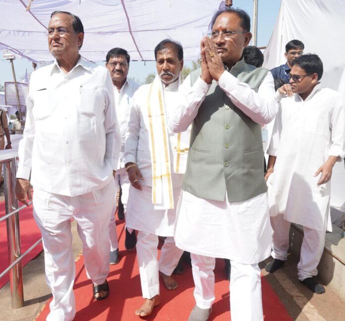 मुख्यमंत्री श्री विष्णु देव साय ने गिरौदपुरी धाम में आयोजित गुरुदर्शन मेला के पहले दिन गुरु गद्दी का दर्शन एवं पूजा-अर्चना कर प्रदेशवासियों की खुशहाली और समृद्धि की कामना की।