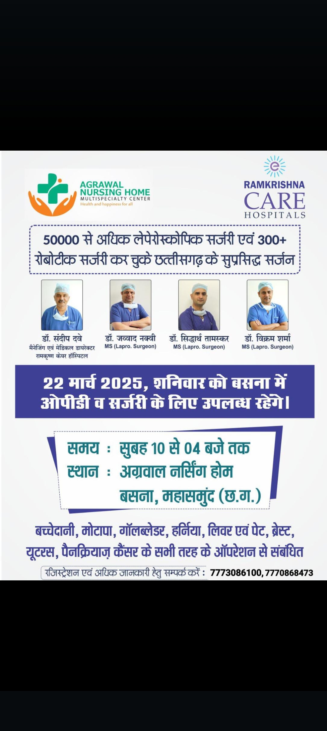 रजिस्ट्रेशन एवं अधिक जानकारी हेतु सम्पर्क करें : 7773086100, 777086847350000 से अधिक लेपेरोस्कोपिक सर्जरी एवं 300+