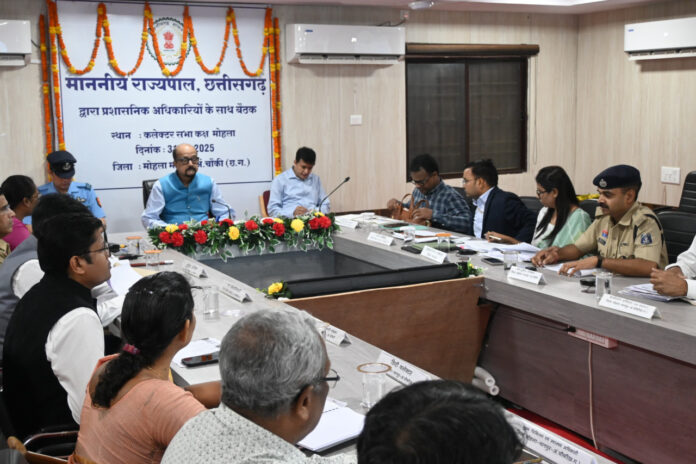 राज्यपाल श्री रमेन डेका ने मोहला मानपुर अंबागढ़ जिले में प्रशासनिक अधिकारियों की ली बैठक
