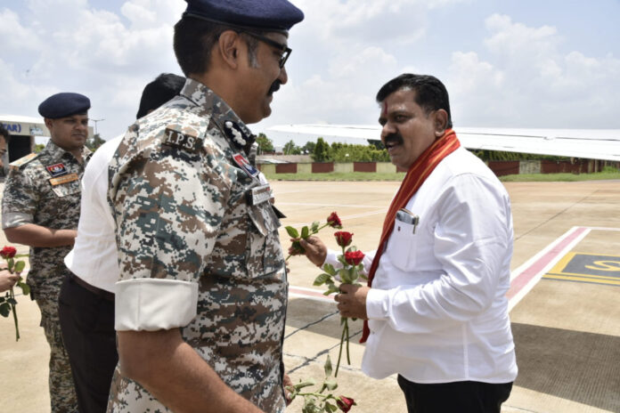जगदलपुर के मां दंतेश्वरी एयरपोर्ट में उप मुख्यमंत्री श्री विजय शर्मा  और वन मंत्री श्री केदार कश्यप अपने एक दिवसीय संक्षिप्त बस्तर प्रवास में जगदलपुर आगमन पर जनप्रतिनिधियों और वरिष्ठ अधिकारियों ने आत्मीय स्वागत किया। इस दौरान विधायक चित्रकोट श्री विनायक गोयल भी साथ रहे। अतिथियों का स्वागत बस्तर सांसद श्री महेश कश्यप, महापौर श्री संजय पाण्डे सहित अन्य जनप्रतिनिधियों के साथ ही एडीजी नक्सल ऑप. श्री विवेकानंद सिन्हा, कमिश्नर श्री डोमन सिंह, बस्तर आईजी श्री सुंदरराज पी., एसपी श्री शलभ कुमार सिन्हा, प्रभारी कलेक्टर एवं जिला पंचायत सीईओ श्री प्रतीक जैन सहित अन्य अधिकारियों द्वारा किया गया।