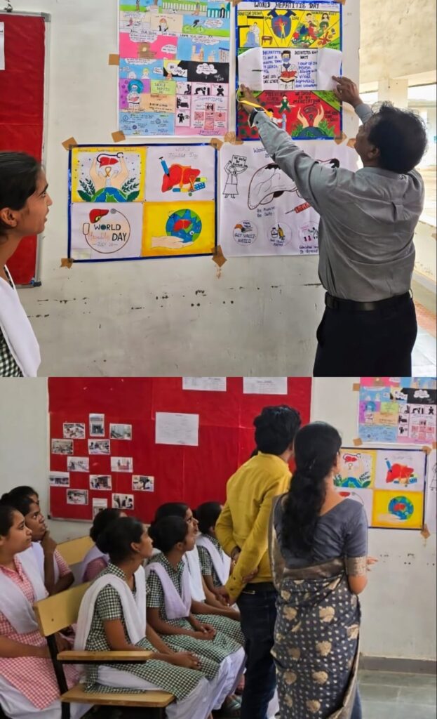 महासमुंद विश्व हेपेटाइटिस दिवस के अवसर पर जी.एन.एम की छात्राओं द्वारा पेंटिंग प्रतियोगिता का आयोजन हेपेटाइटिस से बचाव एवं नियंत्रण के संबंध में दी गई जानकारी