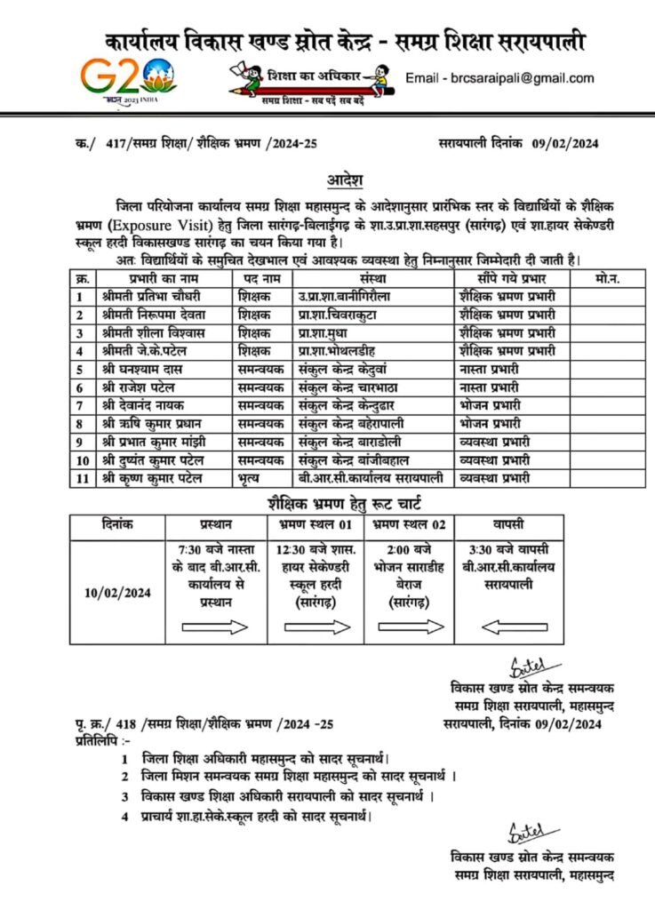 मामला 10 फरवरी 2024 के शैक्षणिक भ्रमण (Exposure Visit) कार्यक्रम से जुड़ा है। जिला परियोजना कार्यालय ने आदेश जारी कर मिडिल क्लास (उच्च प्राथमिक) के बच्चों को बिलाईगढ़ क्षेत्र के शैक्षणिक स्थलों की सैर कराने की योजना बनाई थी। इस भ्रमण के लिए शिक्षकों की टीम भी गठित की गई थी।