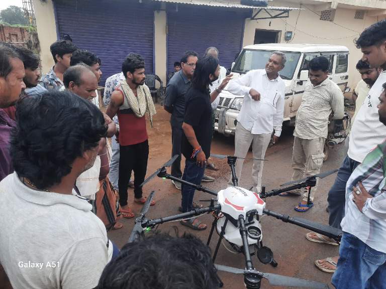 महासमुंद, 24 अगस्त 2025। सरायपाली विकासखण्ड के ग्राम जोगनीपाली में शनिवार को किसानों के बीच आधुनिक कृषि तकनीक का प्रदर्शन किया गया। इस अवसर पर ड्रोन तकनीक के माध्यम से फसलों पर नैनो यूरिया का छिड़काव किया गया।