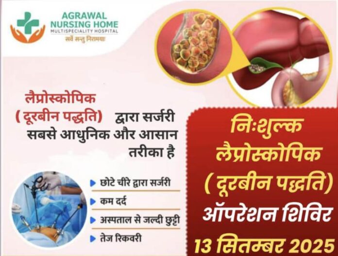 आज अग्रवाल नर्सिंग होम में निःशुल्क लैप्रोस्कोपिक (दूरबीन पद्धति) ऑपरेशन शिविर