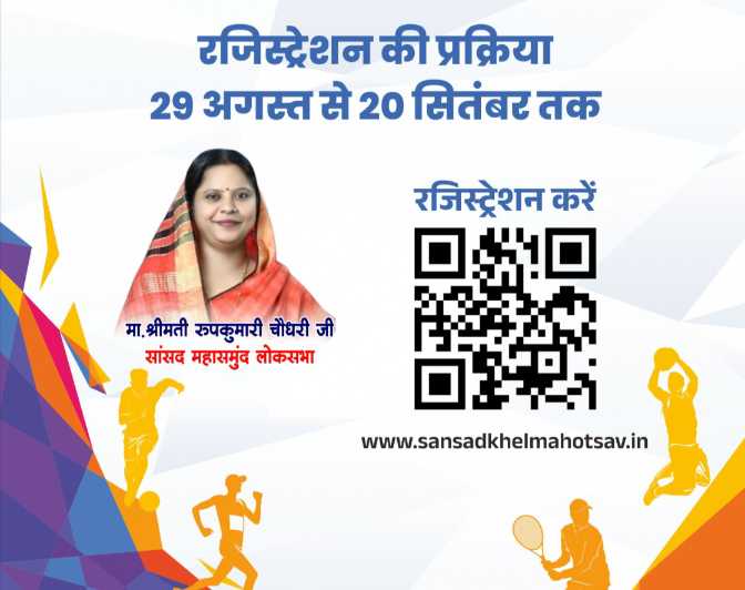 इच्छुक प्रतिभागी www.sansad khelmahotsav.in पोर्टल अथवा उपलब्ध QR कोड के माध्यम से ऑनलाइन पंजीयन कर सकते हैं।