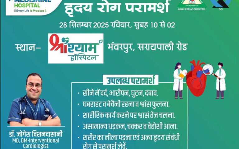 बसना : श्री श्याम हॉस्पिटल भंवरपुर में 28 सितम्बर को हृदय रोग परामर्श शिविर