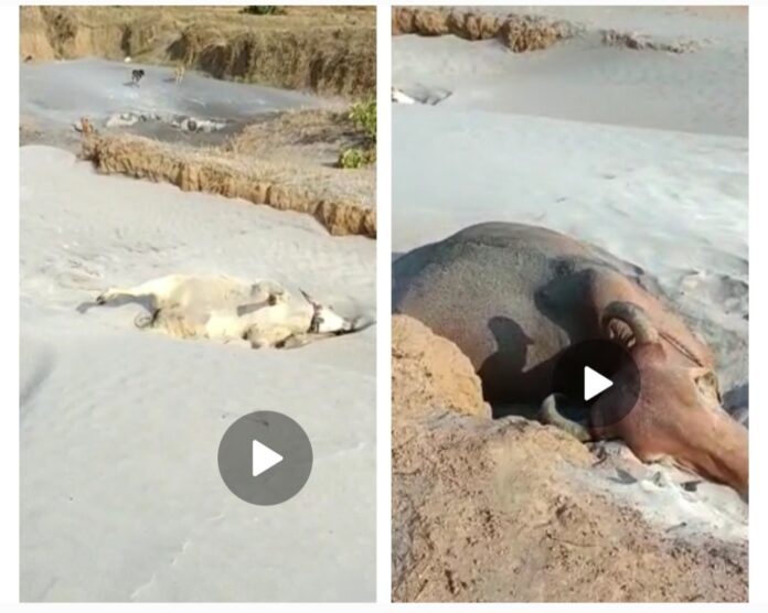 राइस मिल के फेके गए राखड़ में फंसकर 2 पषुओ की दर्दनाक मौत हो गई है जिसका वीडियो सोसल मीडिया में वायरल हो रहा है वायरल वीडियो को देखने से पता चलता है की राईसमिल द्वारा फेके गए गर्म राख में दो गायें जा फंसी और वहां से नहीं निकलने में कामयाब नही हो पाई और दोनों की मौत हो गई। जानकारी के अनुसार महासमुंद जिले के झलप क्षेत्र के ग्राम टूरीडीह मुक्ति धाम के पास राइस मिलर द्वारा खुले गड्ढे में राईस मिल से निकले गर्म राखड़ को डाल दिया जा रहा है। इसी का नतीजा रहा कि बीते दिन दो गायों की गर्म राखड़ में फंस कर अपनी जान गंवा दी।