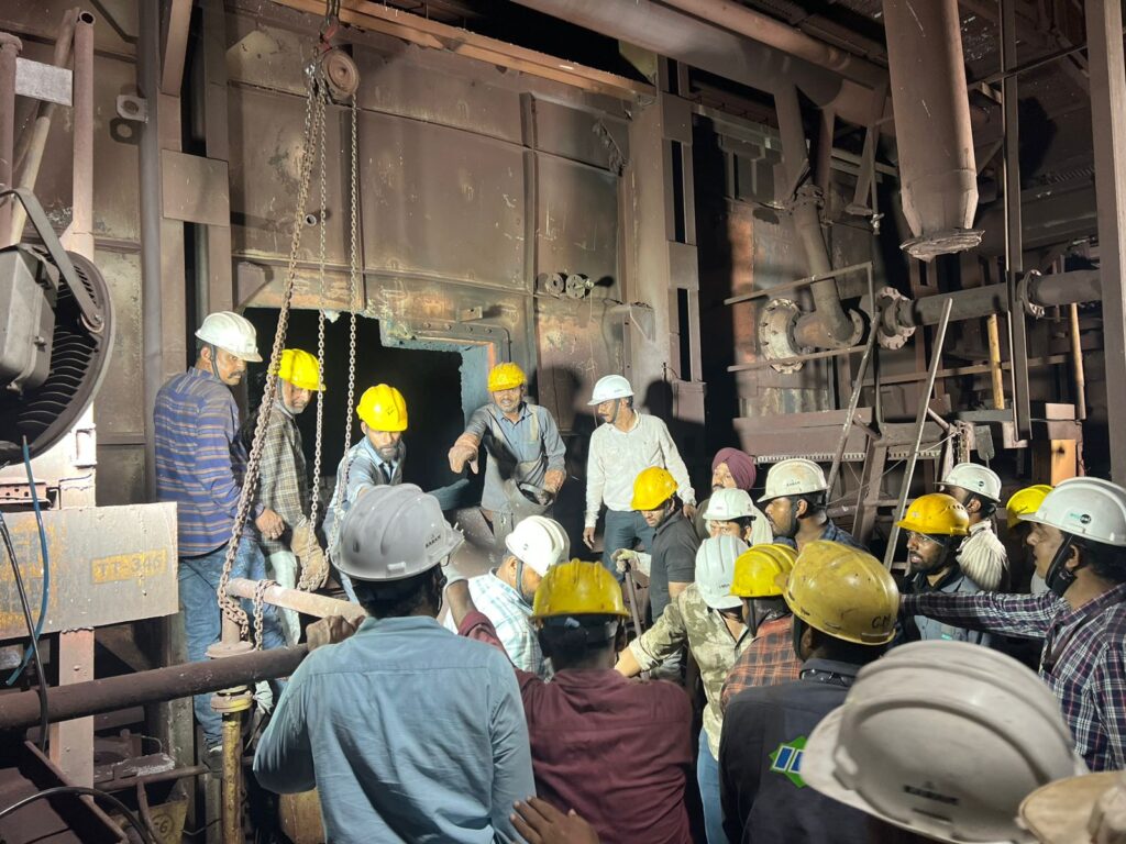 प्लांट के अंदर उसी समय उत्पादन का काम भी चल रहा था और बगल में दीवार निर्माण कार्य भी हो रहा था। कंपनी के प्रबंधन ने मशीनों को थोड़ी देर के लिए बंद किया और जांच के लिए मैनेजर समेत 10-12 लोग मौके पर पहुंचे। लेकिन तभी तापमान नियंत्रित करने वाला गरम लोहे का विशाल ढांचा अचानक ढह गया।