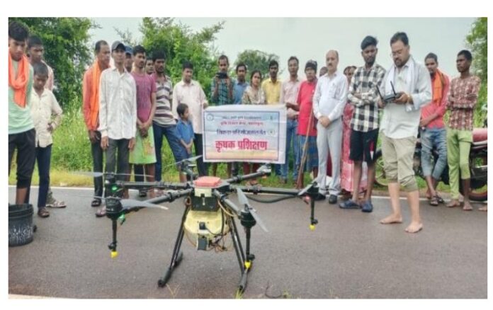 महासमुंद/धान की फसल में ड्रोन तकनीक का प्रदर्शन, किसानों को दी गई तकनीकी जानकारी