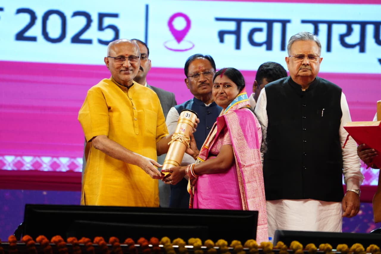 महासमुंद की प्रेमशीला बघेल रानी वीरांगना अवंती बाई लोधी सम्मान से सम्मानित जिले की पहली महिला जिन्हें ये पुरस्कार मिला राज्य अलंकरण समारोह में उपराष्ट्रपति सी पी राधाकृष्णन ने किया सम्मानित