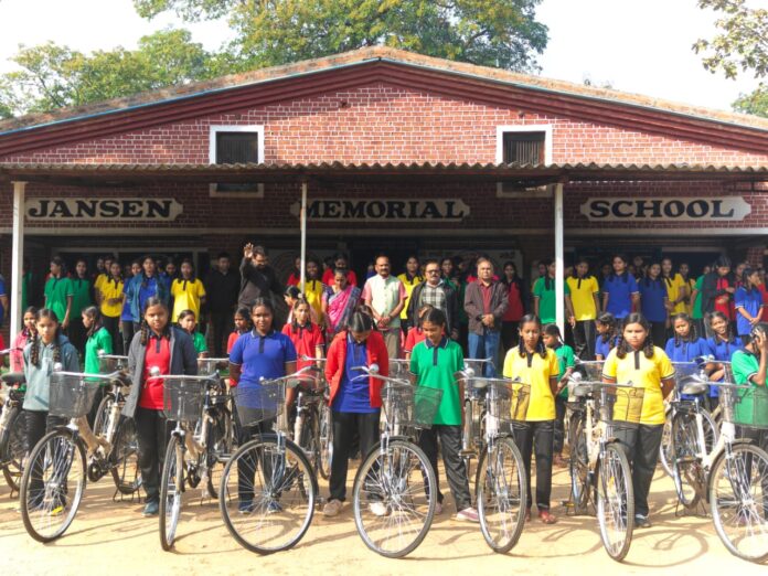 समारोह में मुख्य अतिथि भाजपा जिला उपाध्यक्ष हरप्रसाद पटेल, विशिष्ठ अतिथि सरपंच ग्राम पंचायत जगदीशपुर रिद्धि मनसा नायक, सरपंच ग्राम पंचायत नरसिंगपुर नवनील माझी, शाला प्रबंध समिति अध्यक्ष, तथा प्राचार्य सोना जी के आतिथ्य में सम्पन्न हुई। छत्तीसगढ़ शासन की सरस्वती सायकल योजना ने कई छात्राओं की जिंदगी में सकारात्मक परिवर्तन लाया है। इस योजना के तहत शासन द्वारा छात्राओं को मुफ्त साइकिलें वितरित की जा रही हैं ताकि वे स्कूल तक आसानी से पहुंच सकें। इसी कड़ी में आज जेनसेन मेमोरियल स्कूल जगदीशपुर विकासखंड पिथौरा में सरस्वती सायकल योजना के तहत 37 छात्राओं को साइकिल का वितरण किया गया। कार्यकर्म के मुख्य अतिथि भाजपा जिला उपाध्यक्ष हरप्रसाद पटेल ने कहा कि सरस्वती सायकल योजना का मुख्य उद्देश्य दूर-दराज से आने वाले छात्राओं की सुविधाओं और उनके शिक्षा में निरंतर को बढ़ावा देना है।