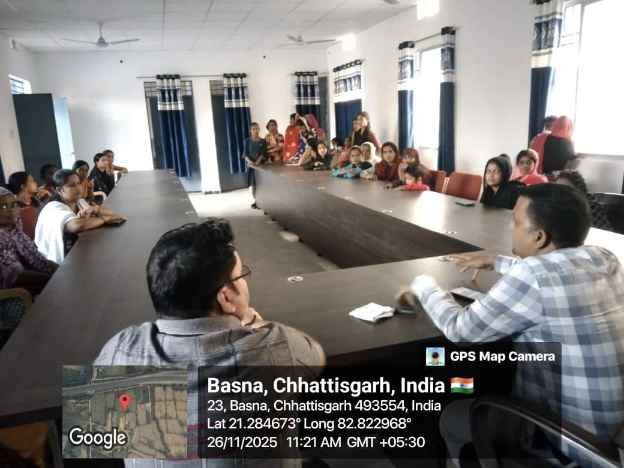भारत के संविधान दिवस के अवसर पर बसना नगर पंचायत में सोमवार को विभिन्न जागरूकता और जनहित कार्यक्रमों का आयोजन किया गया। यह कार्यक्रम राज्य शहरी विकास अभिकरण एवं राष्ट्रीय आजीविका मिशन के निर्देश पर आयोजित किए गए, जिसमें स्व सहायता समूह (SHG) की महिलाओं, अधिकारियों तथा जनप्रतिनिधियों ने सक्रिय रूप से भाग लिया।