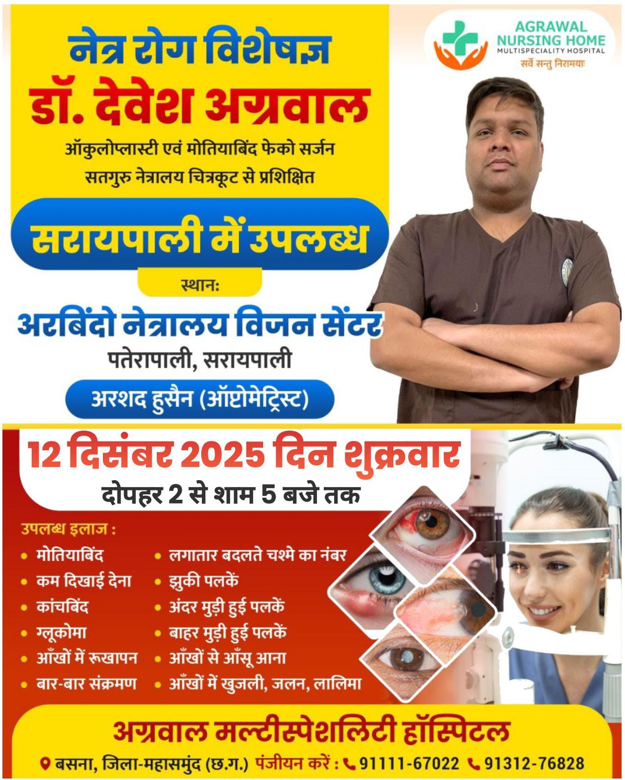 अग्रवाल नर्सिंग होम के नेत्र रोग विशेषज्ञ डॉ. देवेश अग्रवाल 12 दिसंबर को सरायपाली में देंगे विशेष नेत्र सेवाएँ