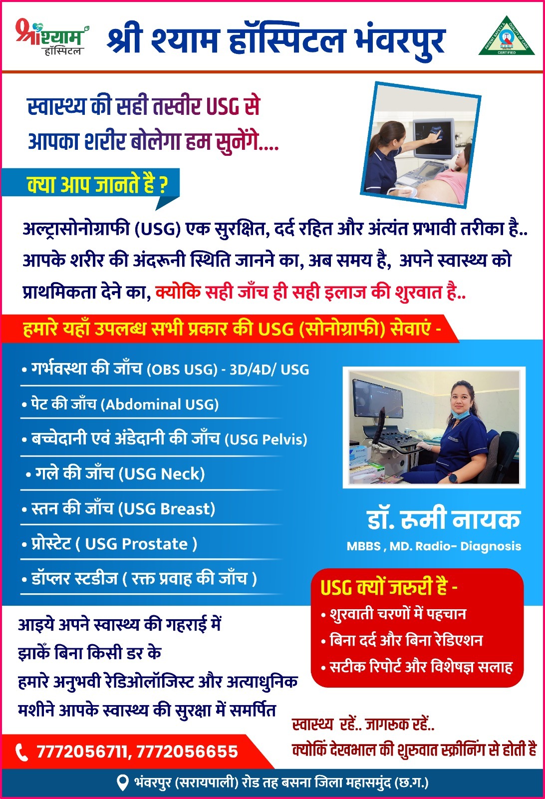 बसना भंवरपुर में श्री श्याम हॉस्पिटल में अत्याधुनिक USG जांच सुविधा उपलब्ध