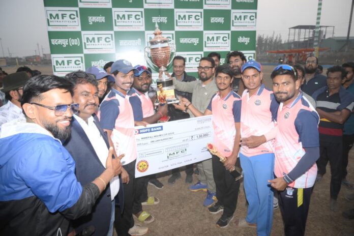 सरायपाली। मां रुद्रेश्वरी क्रिकेट क्लब, बैतारी एवं मित्रा फिट क्लब के संयुक्त तत्वावधान में आयोजित स्वर्गीय श्री रघुवीर साहू जी की स्मृति में आल इंडिया एमएफसी कप 2025-26 का फाइनल मुकाबला 04 जनवरी 2026, रविवार को दिनाकाशी क्रिकेट मैदान में भव्य रूप से सम्पन्न हुआ।