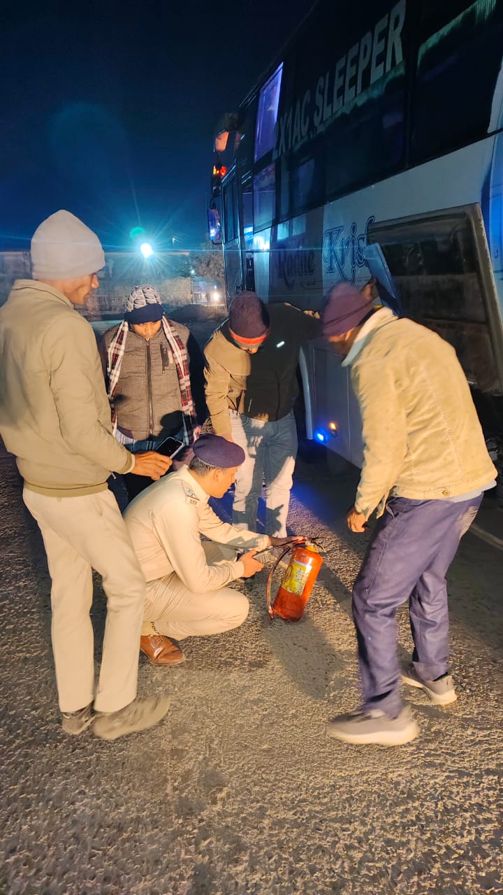 बसों में रखे गए अग्निशमन यंत्रों की वैधता की जांच की गई। आपातकालीन दरवाजों को खोलने बंद करने के बारे में चालक परिचालको को बताया जा रहा है और उनसे ही खोलना बंद करना कराया जाकर जानकारी दी जा रही है, बसों में प्राथमिक उपचार पेटी और उसमे रखे चिकित्सा सामग्री की जांच की जा रही है ।