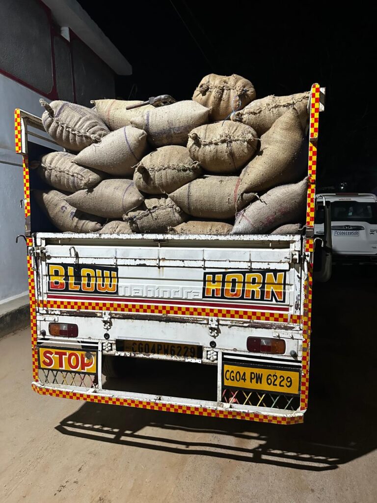 बसना/अवैध धान परिवहन एवं भंडारण पर कार्रवाई, कुल 217 कट्टा धान एवं पिकअप वाहन जप्त