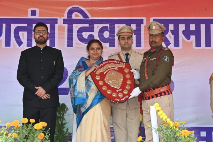 सांसद श्रीमती रूपकुमारी चौधरी ने गणतंत्र दिवस समारोह में प्रथम, द्वितीय एवं तृतीय स्थान प्राप्त करने वाले विभागों की झांकियां, सांस्कृतिक कार्यक्रम में शामिल स्कूली विद्यार्थियों, परेड में शामिल होने वाले वरिष्ठ सशस्त्र समूह, परेड वरिष्ठ समूह, परेड कनिष्ठ समूह एवं प्लाटून कमांडरों को प्रशस्ति पत्र एवं स्मृति चिन्ह देकर सम्मानित किया। इस अवसर पर परेड कमांडर श्रीमती दीप्ति कश्यप एवं सहायक उपनिरीक्षक साइमा अम्बिलकर को मोमेण्टो, कप प्रदान कर सम्मानित किया गया।