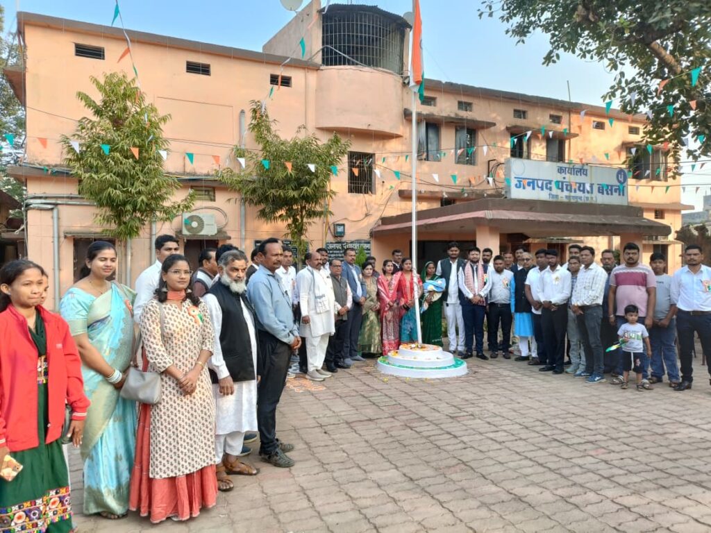 जनपद पंचायत बसना कार्यालय में आयोजित समारोह में अध्यक्ष श्रीमती डिलेस्वरी निराला द्वारा ध्वजारोहण किया गया, जबकि सभापति प्रकाश सिन्हा विशिष्ट अतिथि के रूप में उपस्थित रहे। इस अवसर पर उन्होंने अधिकारियों एवं कर्मचारियों को संबोधित करते हुए कहा कि संविधान, लोकतंत्र और जवाबदेह प्रशासन ही मजबूत भारत की नींव हैं। उन्होंने कहा कि जनपद पंचायत शासन और जनता के बीच सेतु की भूमिका निभाती है, जहां से विकास की सही दिशा तय होती है।