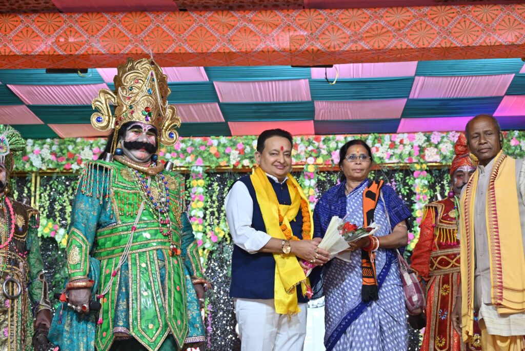 कार्यक्रम के गौरवशाली क्षणों के दौरान, विश्व प्रसिद्ध धनु जात्रा में अपने सशक्त अभिनय से करोड़ों दर्शकों के हृदय में अमिट छाप छोड़ने वाले एवं ‘कंस महाराज’ की ऐतिहासिक भूमिका को जीवंत करने वाले प्रख्यात कलाकार हृषिकेश भोई का भव्य नागरिक अभिनंदन किया गया। विधायक डॉ. संपत अग्रवाल ने मंच पर उपस्थित होकर उन्हें पुष्पगुच्छ भेंट किया, साथ ही स्मृति चिन्ह (मोमेंटो) प्रदान कर एवं अंगवस्त्र ओढ़ाकर सम्मानित किया।