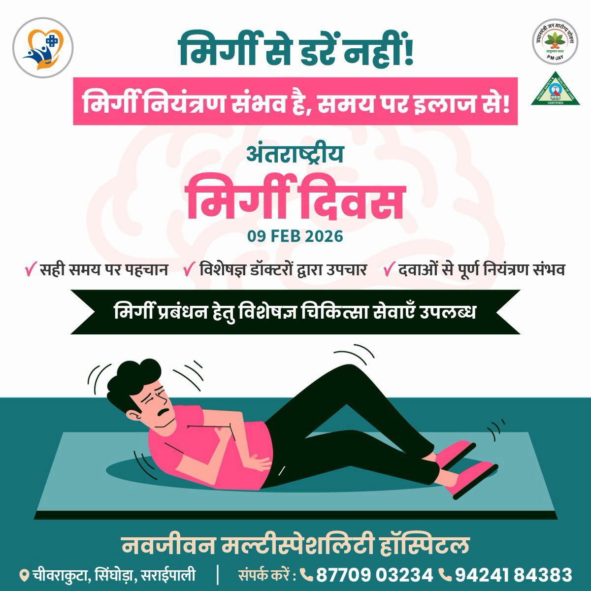 सरायपाली 09 फरवरी नवजीवन मल्टीस्पेशलिटी हॉस्पिटल, अंतरराष्ट्रीय मिर्गी दिवस पर जागरूकता संदेश: “मिर्गी से डरें नहीं, समय पर इलाज से नियंत्रण संभव”