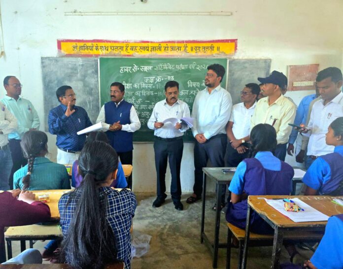 महासमुंद / विकासखंड बागबाहरा अंतर्गत शासकीय उच्चतर माध्यमिक विद्यालय, सुखरीडबरी में कक्षा 09वीं में प्रवेश हेतु संचालित प्रयास प्रवेश परीक्षा हेतु आयोजित मॉक टेस्ट का आयुक्त विभागीय जांच, छत्तीसगढ़ शासन श्री दिलीप वासनीकर (आईएएस) एवं कमिश्नर रायपुर संभाग श्री महादेव कावरे (आईएएस) द्वारा रविवार को अवलोकन किया गया। अधिकारी द्वय ने परीक्षा केंद्र में पहुँचकर संपूर्ण व्यवस्थाओं का निरीक्षण किया तथा परीक्षा की पारदर्शिता एवं अनुशासन की सराहना की। अवलोकन के दौरान उन्होंने विद्यार्थियों से सीधे संवाद स्थापित कर उनकी तैयारी, विषयगत समझ एवं आत्मविश्वास का आकलन किया। निरीक्षण के दौरान अधिकारियों ने विद्यार्थियों को परीक्षा से संबंधित महत्वपूर्ण टिप्स एवं प्रभावी रणनीतियाँ प्रदान की। विशेष रूप से गणित विषय के विभिन्न प्रश्न पूछकर उनकी अवधारणात्मक समझ को परखा तथा जटिल प्रश्नों को सरल एवं सहज विधि से समझाते हुए विद्यार्थियों की जिज्ञासाओं का समाधान किया। इससे विद्यार्थियों में आत्मविश्वास एवं उत्साह का संचार हुआ।