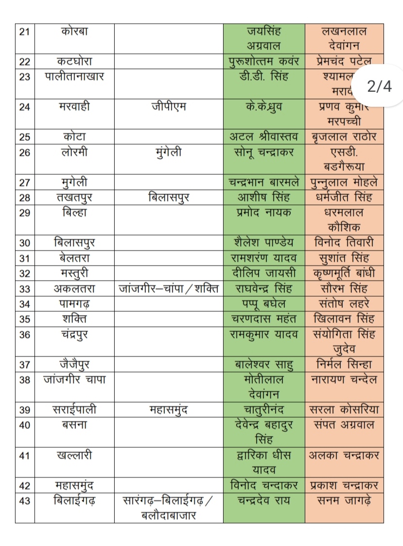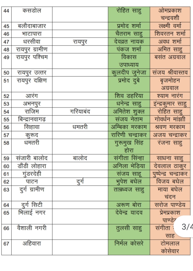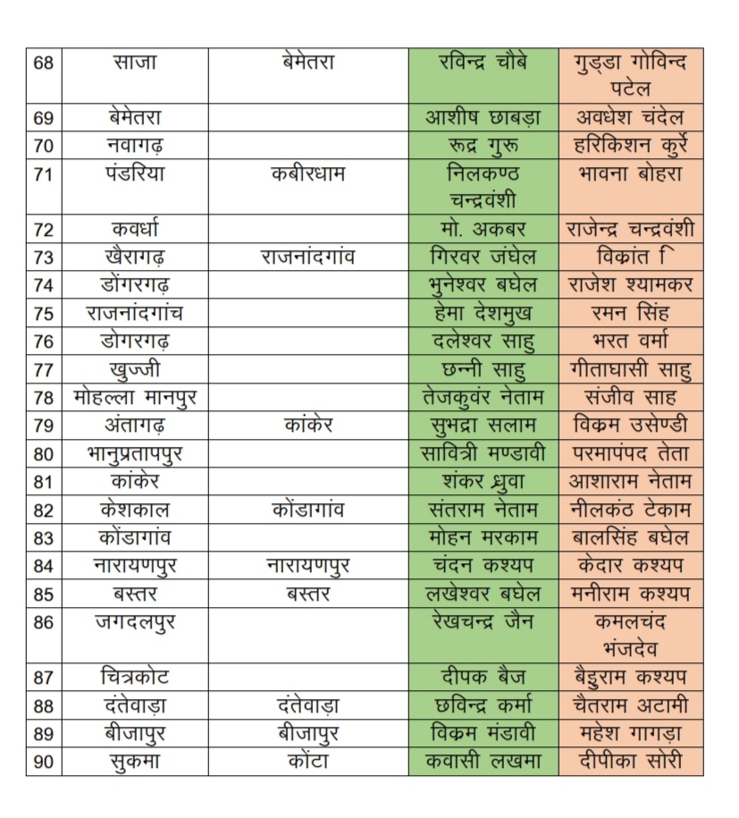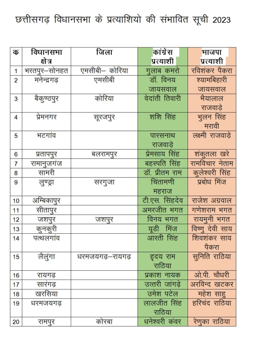 CG-/ कांग्रेस बीजेपी के 90 विधानसभा सीट के सिंगल पैनल नामों की संभावित सूची, सोशल मीडिया पर वायरल ?