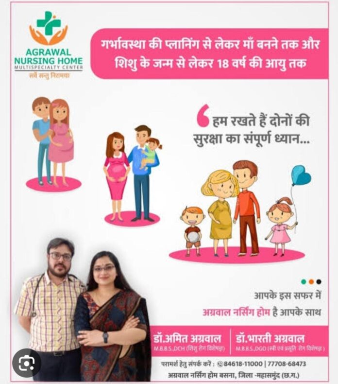 प्राइवेट अस्पतालों में आयुष्मान कार्ड से डिलीवरी एवं बच्चेदानी से संबंधित ऑपरेशन नहीं होने के कारण अधिक आर्थिक बोझ से राहत देने हेतु ,,अग्रवाल नर्सिंग होम बसना के द्वारा निश्चित समय अवधि के लिए यह सुविधा प्रदान की जा रही है|