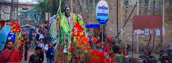 अब मन में सवाल आएगा कि प्लास्टिक की विदाई यात्रा में खास क्या है, तो भैया विदाई यात्राएं तो तमाम तरह की निकलती हैं, राजनीतिक रैलियों में तो कई बार विरोध स्वरूप किसी जिंदा आदमी की शव यात्रा तक निकाल दी जाती है। खैर, अभी तक तो आपने प्लास्टिक के बैन होने, उसके खिलाफ एक्शन और रिकवरी होने, बैन हो चुकी प्लास्टिक के इस्तेमाल पर चालान या ‘सिंगल यूज प्लास्टिक को ना’ कहने के लिए प्रेरित करने वाले जागरूकता अभियान के बारे में ही देखा या सुना होगा। पर, सभी मामलों में प्लास्टिक निर्जीव होती है, कहने का मतलब जिंदा नहीं होती। सुनकर भले ही हैरानी हो, मगर प्रयागराज में जो विदाई यात्रा निकाली गई उसमें प्लास्टिक जिंदा नजर आई। इस अनोखी विदाई यात्रा में कई बातें निराली थीं, क्योंकि यहां प्लास्टिक जिंदा ही नहीं, बल्कि काफी भयानक और हिंसक प्रवृत्ति की दिखाई दी, जिसके हाथ में तलवार भी थी।