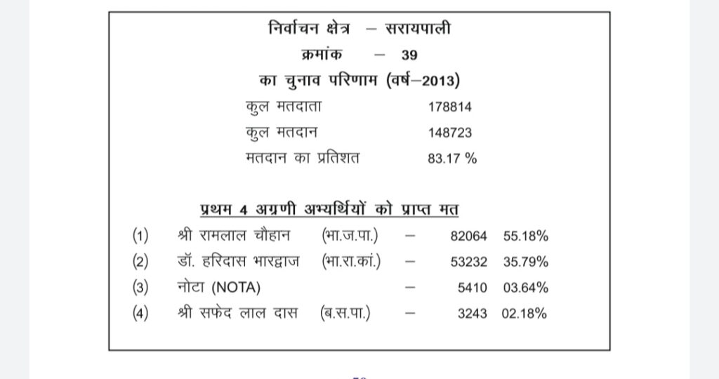 कांग्रेस से टिकट भी मांग रहे है इनके अलावा कगभग 50 लोगों ने सरायपाली के लिए कांग्रेस से टिकट मांगा है । क्या 2003 से जनता का चला आ रहा मुड़ क्या बदलेगी या इस बार फिर सरायपाली में बारी बारी के अनुसार भाजपा का प्रत्यासी जीतेगा ।