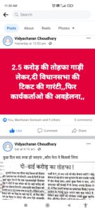 बसना से इस नेता का नाम फायनल माना रहा है लेकिन मण्डल अध्यक्ष विद्याचरण चौधरी 2: 50 करोड़ के कार आरोप किस पर लगा रहे है ।