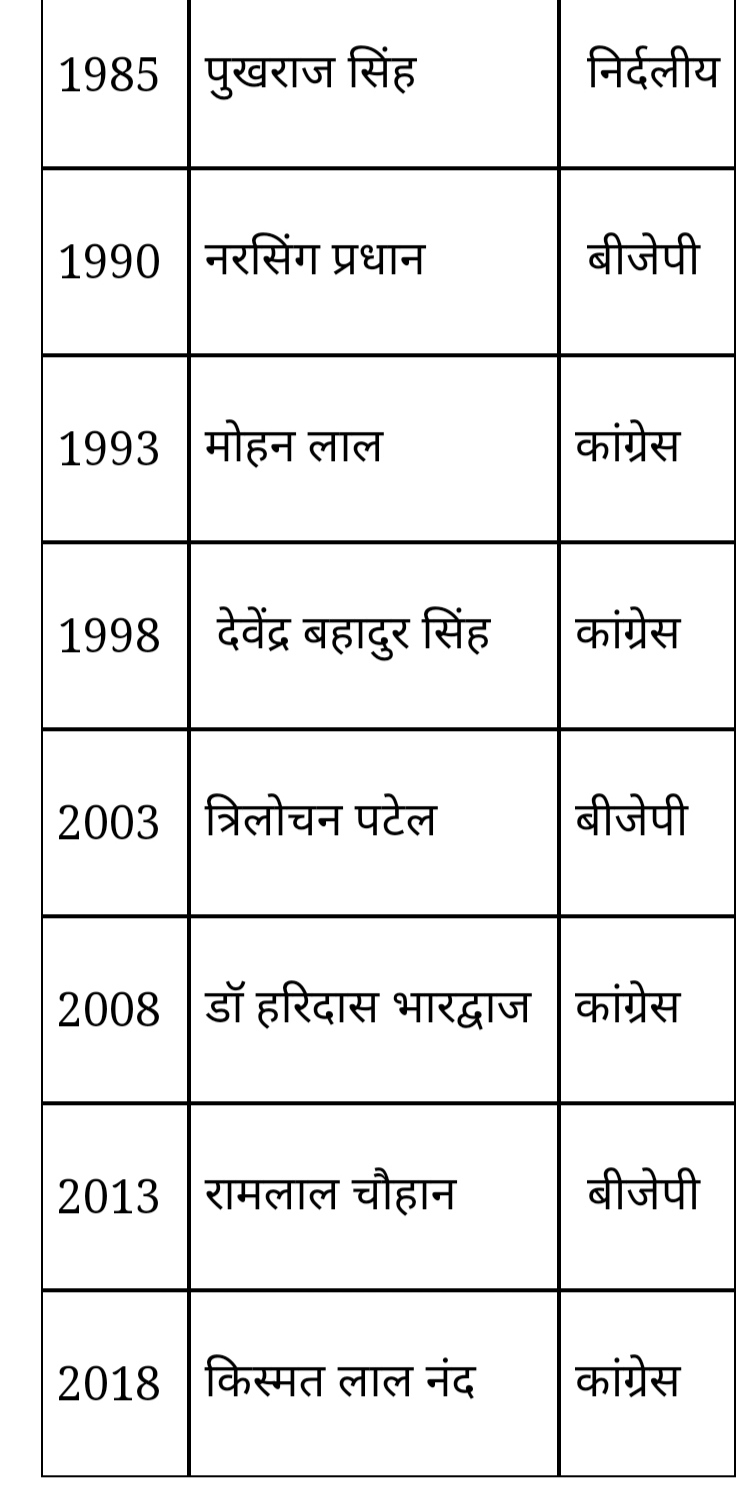 भारतीय जनसंघ के जगदीश लाल को 1310 वोट के अंतर से हराकर विधायक चुने गए। साल 1998 के चुनाव में राजा वीरेंद्र बहादुर के बेटे राजा देवेंद्र बहादुर ने 14641 वोट से कांग्रेस को जीत दिलाई।