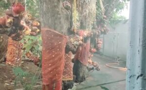 वही लोगो का कहना है कि बुजुर्ग महिला बाजार से आते वक्त वन दुर्गा मंदिर के पास ही सौच कर दी और ओ महिला मौन हो गई थी किसी को बोलने में सक्षम नही थी और वही पर छूट गई गांव वालों को ढूंढने के और वन देवी में मनोकामना के बाद महिला बोलनें में सक्षम हुई