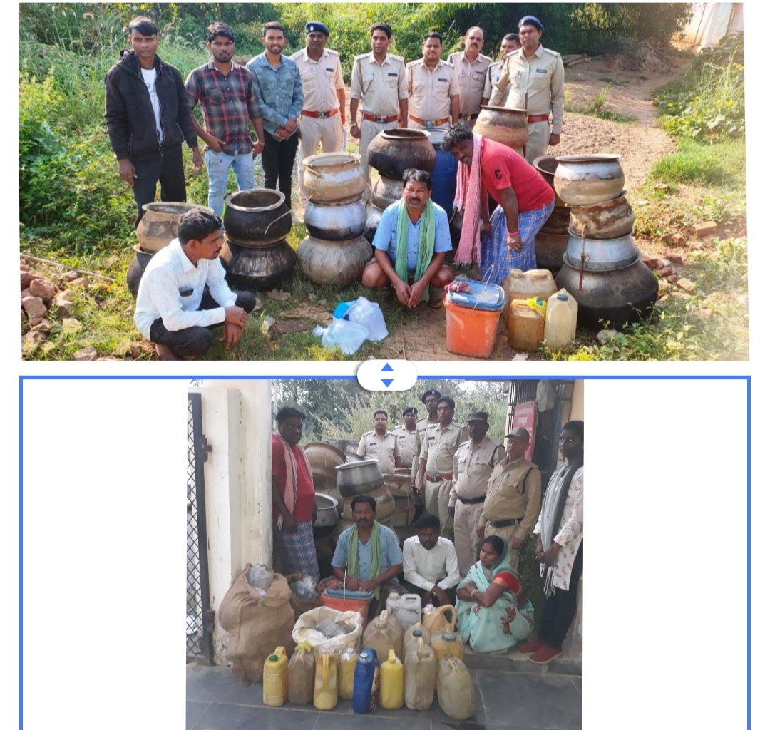 सरायपाली मण्डल और एसडीओपी सरायपाली स्टाफ़ द्वारा संयुक्त कार्यवाही की गई। आबकारी वृत्त-सरायपाली अंतर्गत ग्राम-नूनपानी, थाना-सरायपाली निवासी दाऊ लाल सिदार उम्र-40 वर्ष के कब्जे से 75 लीटर हाथ भट्ठी महुआ मदिरा और लगभग 1000 किलोग्राम महुआ, कमला साहू उम्र-35 वर्ष के कब्जे से 105 लीटर हाथ भट्ठी महुआ मदिरा और लगभग 2150 किलोग्राम महुआ लाहन जप्त किया गया। इसी प्रकार ग्राम लिमाऊगूड़ा, थाना- सरायपाली में 46 वर्षीय भोला चौहान से 90 लीटर हाथ भट्ठी महुआ मदिरा और लगभग 1550 किलोग्राम महुआ लाहन एवं 48 वर्षीय रतन चौहान से 40 लीटर हाथ भट्ठी महुआ मदिरा और 400 किलो ग्राम लाहन जप्त किया गया।