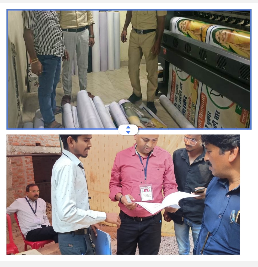 महासमुन्द 01 नवम्बर 2023/ खल्लारी विधानसभा अंतर्गत बागबाहरा में उड़नदस्ता टीम द्वारा बिना अनुमति प्रिंट किए जा रहे फ्लैक्स को जप्त किया गया है। रिटर्निंग ऑफिसर श्रीमती सृष्टि चंद्राकर ने बताया कि तहसीलदार श्री लीलाधर कंवर के नेतृत्व में उड़नदस्ता की टीम ने यह कार्यवाही की है। बागबाहरा स्थित रजा प्रिंटर्स द्वारा बिना अनुमति के राजनैतिक प्रचार हेतु फ्लैक्स प्रिंट किया जा रहा था। इस दौरान प्रिंट किए गए आठ रोल जप्त किया गया है। इसी तरह मॉ शारदा प्रिंटर्स पिथौरा से भी प्रचार सामग्री जप्त किया गया है। नायब तहसीलदार श्री नीरज कुमार एवं रविन्द्र काले द्वारा औचक निरीक्षण किया गया। जिसमें तीन पोस्टर एवं 200 नग विजिटिंग कार्ड जप्त कर कार्यवाही की गई है। ज्ञात है कि लोक प्रतिनिधित्व अधिनियम 1951 की धारा 127 – (क) के तहत निर्वाचन लड़ने वाले अभ्यर्थियों अथवा राजनैतिक दलों द्वारा कराए जाने वाले पुस्तिका या पोस्टरों के मुद्रण और प्रकाशन संबंध में प्रिंटिंग प्रेस के मेसर्स, स्वामी एवं प्रबंधक को बैठक लेकर जानकारी दी गई है। जिसके तहत कोई भी व्यक्ति ऐसी निर्वाचन पुस्तिका या पोस्टर जिसके मुख्य पृष्ठ पर उसके मुद्रक और प्रकाशक के नाम और पते न हो, मुद्रित या प्रकाशित न करेगा और न मुद्रित प्रकाशित कराएगा।