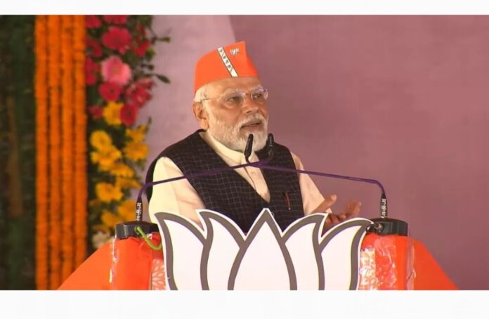 PM Modi in Mahasamund CG: महासमुंद। बेमचा मैदान में जनसभा को संबोधित करते हुए प्रधानमंत्री नरेंद्र मोदी ने कहा कि मैं सबसे पहले बहुत-बहुत बधाई देना चाहता हूं, बधाई इसलिए कि 7 नवंबर को पहले चरण में जो वोटिंग हुई है उसने कांग्रेस के झूठ के गुब्बारे को फोड़ दिया है। आज पूरा छत्तीसगढ़ एक ही स्वर में कह रहा है…भाजपा आवत हे…। दमदार तरीके से आवत हे…।