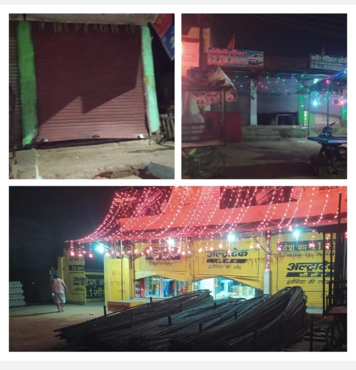 बसना : चोरों ने देर रात दर्जनों दुकानों के ताला और सटर तोड़ने की खबर है मतदान के ठीक एक दिन बाद बसना सहर में देर रात कई दुकानों के ताला तोड़कर चोर गैंग ने कई छोटी बड़ी दुकानों में धावा बोल दिया है घटना देर रात की बताया जा रहा है कि जब सहर के लोग मॉर्निंग वर्क पर निकले तो दुकानों के ताला टूटे दिखाई दिए लोगो ने दुकानदारो को फोन कर सूचना दिए है फोटो देखने पर दरवाजा सटर आधा उठा हुवा दिखाई दे रहे है सूत्रों ने अनुसार लगभग 12 से 15 दुकानों के ताला तोड़े गए है अभी तक किसका कितना और क्या चोरी हुवा है यह तो दुकानदारो के सिकायत के बाद ही पता चल पाएगा ।वही सांकरा में भी लगभग 7 दुकानों के ताला टूटने की खबर है