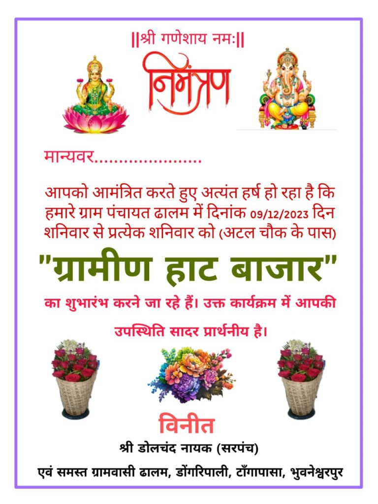 ग्राम पंचायत ढालम में 9 दिसंबर 2023 को साप्ताहिक हाट बाजार का उद्घाटन किया जाएगा जिसमे लोगों को घरेलू सामान समेत कई अन्य चीजों की खरीदारी करने में काफी सुविधा होगी। इस क्षेत्र के लोग कोई भी सामान लेन-देन व खरीदारी करने के लिए अब दूर दराज नही जाना पड़ेगा, इस पंचायत में ही घरेलू सामान समेत कई अन्य चीज हाट बाजार से लोग आसानी से खरीद सकते हैं।