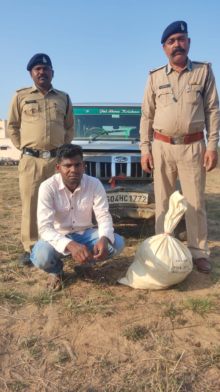 महासमुंद पुलिस थाना खल्लारी की कार्यवाही अवैध मादक पदार्थों की तस्करी पर महासमुन्द पुलिस की कार्यवाही अभियान के तहत 7 kg गांजा के साथ आरोपी गिरफ्तार वाहन महिंद्रा बोलेरो क्रमांक CG 04 HC 1772 में 07 किलो ग्राम मादक पदार्थ गांजा कीमती 3,55,000 रूपये (तीन लाख पचपन हजार रूपये) को परिवहन करते हुये 01 आरोपी गिरफ्तार ।महासमुंद पुलिस द्वारा अवैध गांजा के परिवहन को रोकने हेतु लगातार कार्यवाही अभियान चलाया जा रहा हैँ. जिसके परिपालन में दिनांक 23/02/2024 को हमराह स्टाफ asi प्रवीण शुक्ला, एवम आरक्षक 797,675,845,667 के मय शासकीय वाहन पेट्रोलिंग दौरान एक गाड़ी ग्राम एमके बाहरा के पास एनएच 353 में एक वाहन महिन्द्रा बुलेरो में धुंआ निकलते हुए देखकर गाड़ी का पीछा करते हुए एक सिल्वर कलर महिंद्रा बोलेरो को रोड से गुजरते हुए देखा जिसके सामने इंजन में धुआं जैसा निकलता दिख रहा है