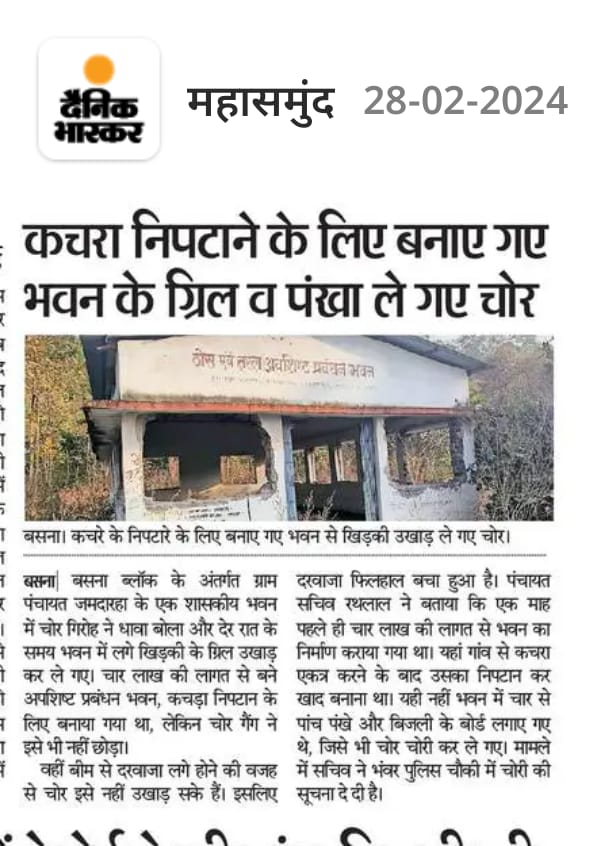 लेकिन इन चोर गैंग का हौसला देखिए रातो रात भवन मे लगे ग्रिल को उखाड़ ले गए सचिव रथ लाय यादव के अनुसार लगभग 1 माह पहले क़ी यह घटना है अपशिष्ट प्रबंधन यानी कचड़ें निपटान के लिए यह भवन बनाया गया था जहा चोरो ने यह घटना को अंजाम दिया है सचिव के