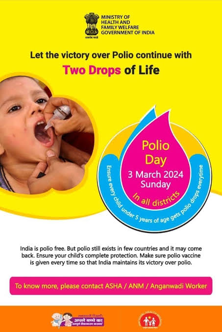 महासमुंद : 03 मार्च को 0 से 5 वर्ष के बच्चों को पिलाई जाएगी पोलियो की दवा, 29 फरवरी 2024 पल्स पोलियो अभियान रविवार 03 मार्च 2024 को आयोजित किया जाएगा। मुख्य चिकित्सा एवं स्वास्थ्य अधिकारी डॉ पी.कुदेशिया ने बताया कि 04 एवं 05 मार्च 2024 को प्रथम दिवस में छूटे हुए बच्चों को घर-घर भ्रमण कर पोलियो की दवा पिलाई जाएगी। उन्होंने बताया कि जिले में 1270 पोलियो बूथों के माध्यम से 0 से 5 वर्ष के एक लाख 15 हजार 495 बच्चों को पोलियो की दवा