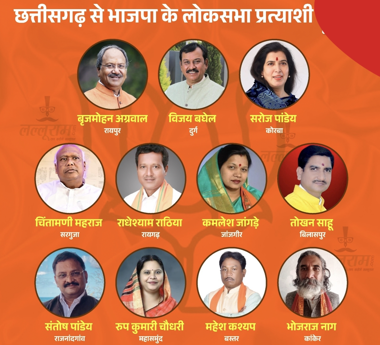 बीजेपी ने छत्तीसगढ़ के 11 लोकसभा क्षेत्रों के उम्मीदवारों की सूची जारी कर दी है।