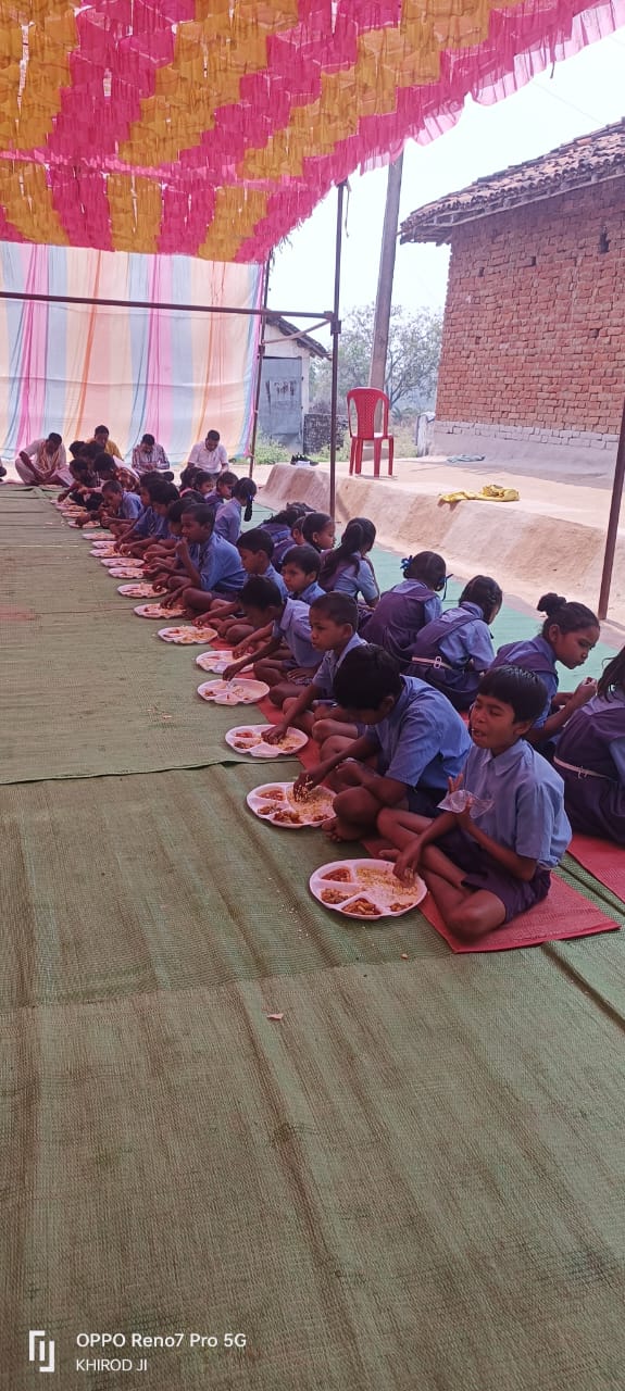प्रधानमंत्री पोषण शक्ति निर्माण योजना के तहत संकुल केंद्र केजुवां शासकीय प्राथमिक शाला मुड़पहार के सभी बच्चों को शाला प्रबंधन समिति के उपाध्यक्ष सत्यभामा विश्वनाथ गिरी के सुपुत्री रोशनी के विवाह के शुभ अवसर पर न्योता भोज का