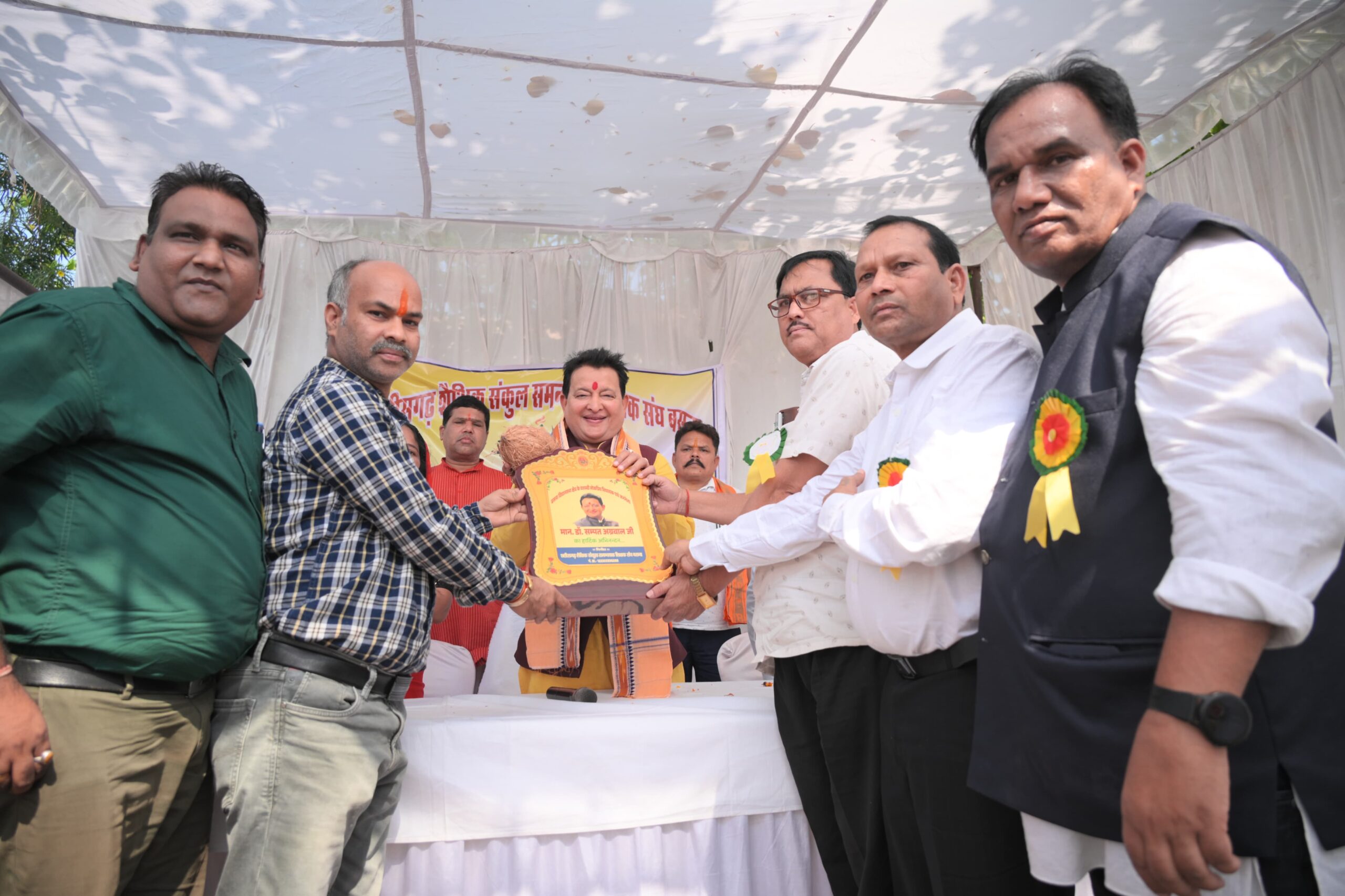 बसना : न्यौता भोज कार्यक्रम में शामिल हुए विधायक डॉ. सम्पत अग्रवाल,बच्चों से चर्चा की प्रधानमंत्री पोषण अभियान के तहत शासकीय प्राथमिक शाला खटखटी में छत्तीसगढ़ शैक्षिक संकुल समन्वयक शिक्षक संघ बसना द्वारा न्यौता भोज कार्यक्रम का आयोजन किया गया। मुख्य अतिथि के रूप में विधायक डॉ सम्पत अग्रवाल शामिल हुए। उन्होंने मां भारती, मां सरस्वती एवं छत्तीसगढ़ महतारी की विधिवत पूजा अर्चना कर क्षेत्र की खुशहाली और छात्र छात्राओं की उज्जवल भविष्य की कामना करते हुए कार्यक्रम का शुभारंभ किये। इस दौरान उन्होंने उत्कृष्ट छात्र छात्राओं को मोमेंटो से सम्मानित किये व छात्र छात्राओं से चर्चा किये तथा उन्होंने पौष्टिक खानपान, स्वच्छता खेल, योग और पढ़ाई लिखाई के बारे में बच्चों को प्रोत्साहित व प्रेरित किये और बच्चों के साथ बैठकर न्यौता भोज ग्रहण किये। इस अवसर पर जिला कलेक्टर प्रभात मलिक, भाजपा जिला उपाध्यक्ष जितेन्द्र त्रिपाठी, विधायक कार्यालय प्रभारी प्रकाश सिन्हा,सरपंच पुष्पा नंद, संकुल प्रदेश अध्यक्ष पूर्णानन्द मिश्रा, ब्रजराज पुरोहित, एबीओ बद्रीविशाल जोल्हे, बीआरसी ललित कुमार देवता, तिरीथ पटेल, विनोद शुक्ला, लोकेश्वर कंवर, संजय भोई, खिरोद पुरोहित, अरविंद मिश्रा, शरद प्रधान, एनके पण्डा, गजानंद भोई, पालकगण सहित छात्र छात्राएं उपस्थित थे।