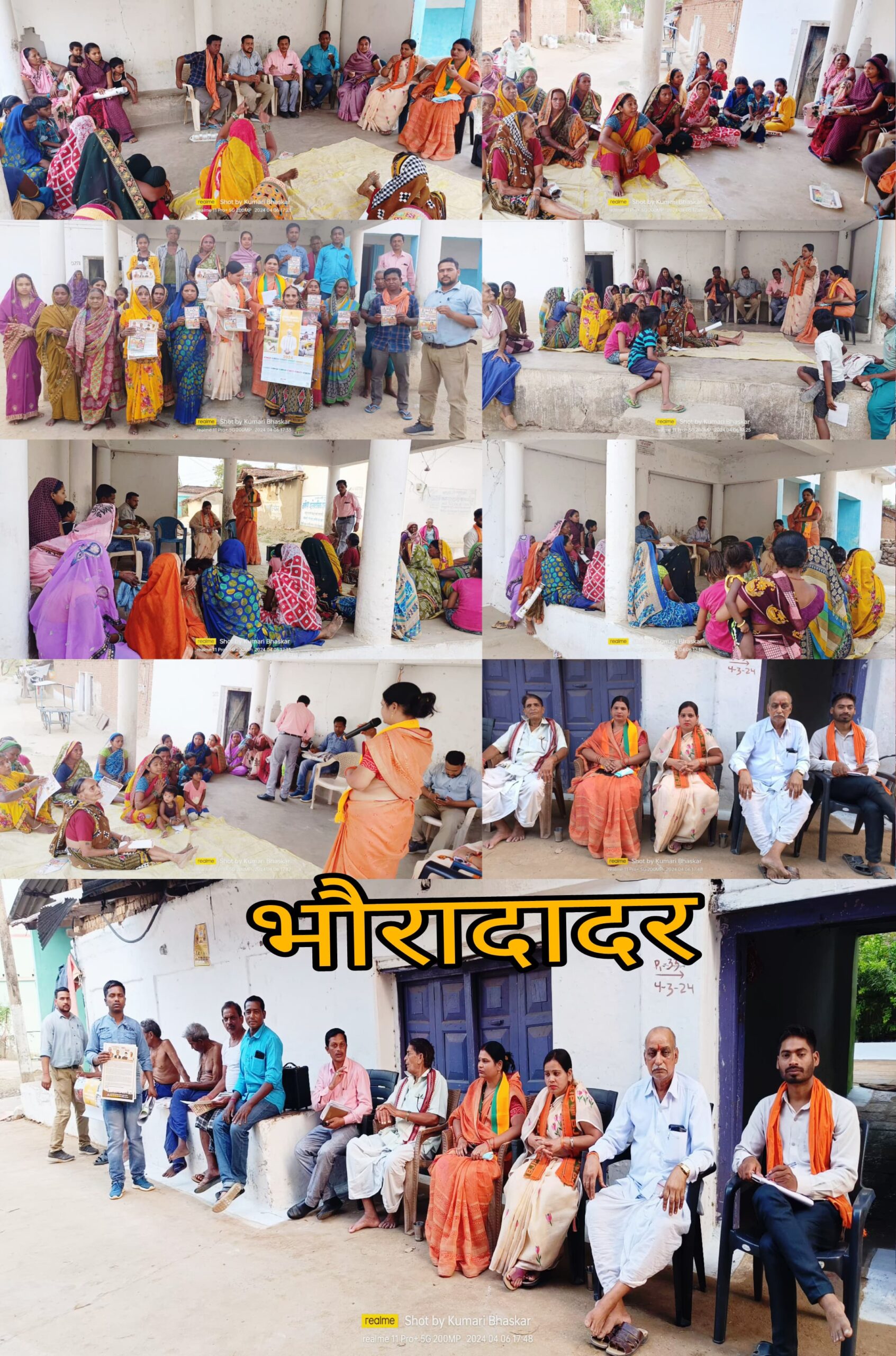 लोकसभा चुनाव प्रचार प्रसारके तहत भंवरपुर मंडल के अंर्तगत ग्राम- भौरादादर में सरायपाली जनपद पंचायत अध्यक्ष- श्रीमती कुमारी भास्कर जी ने केंद्र सरकार के योजनाएं एवं प्रदेश के लोक कल्याणकारी योजनाओं के सम्बंध जानकारी दिए | एवं देश के विकास के लिए महिलाओं कि समृद्धि तथा किसानों एवं युवाओं के भविष्य उज्ज्वल किये जाने हेतु प्रधानमंत्री मोदी को तीसरी बार प्रधानमंत्री बनाने व भाजपा प्रत्याशी श्रीमती रुपकुमारी चौधरी जी को महासमुन्द लोकसभा क्षेत्र में रिकॉर्ड मतों से कमल खिलाने के लिए निवेदन किया |