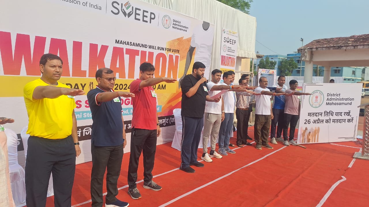 महासमुंद 13 अप्रैल 2024/ जिले में अनिवार्य मतदान को लेकर आज कलेक्टर श्री प्रभात मलिक, वनमंडल अधिकारी श्री पंकज राजपूत सहित जिला अधिकारी और कर्मचारियों ने वॉकथान में भाग लेकर लगभग 2 किलोमीटर पैदल चलते हुए मतदाता जागरूकता के लिए संदेश दिया। इस दौरान महासमुंद के मिनी स्टेडियम में सभी एकत्रित हुए और कलेक्टर द्वारा आगामी लोकसभा चुनाव में अनिवार्य मतदान की शपथ दिलाई गई।