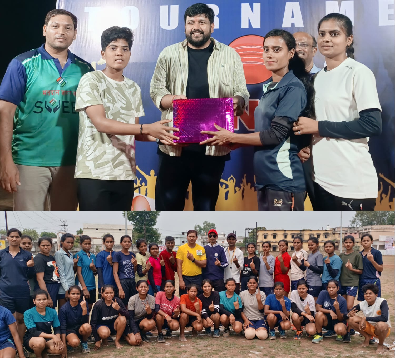 राधिका दीवान, गोला फेंक में प्रथम वर्षा सोनटके द्वितीय प्रीति सबर तृतीय कामिनी ध्रुव, बोरा दौड़ में प्रथम सुरेखा ध्रुव द्वितीय प्रीति सबर तृतीय पूर्णिमा धीवर, चम्मच बांटी दौड़ में प्रथम भुवनेश्वरी सोनकर द्वितीय पदमिनी साहू तृतीय प्रियांशु साहू, फ्रंट रोल में प्रथम प्रियांशु साहू द्वितीय विजेता जोशी तृतीय सोनाली दीवान, लंगड़ी दौड़ में प्रथम सुरेखा द्वितीय प्रीति तृतीय राधिका व बालक वर्ग में प्रथम स्थान राजेन्द्र पटेल द्वितीय श्यामचंद तृतीय सागर यादव, बोरा दौड़ में प्रथम डगेंद्र रात्रे द्वितीय राजेंद्र तृतीय आर्य राज, गोला फेंक में प्रथम आर्य राज द्वितीय प्रेम सिंह तृतीय डगेंद्र रात्रे, चम्मच बांटी दौड़ में प्रथम हेमंत साहू द्वितीय पूनम साहू तृतीय इंद्रजीत, फ्रंट रोल में प्रथम राजेंद्र द्वितीय डगेंद्र तृतीय आर्य राज, लंगड़ी दौड़ में प्रथम अनमोल द्वितीय राहुल तृतीय इंद्रजीत को मिला। खो खो, कबड्डी प्रतियोगिता में खिलाड़ियों से जिला पंजियक दीपक मंडावी, खेल अधिकारी मनोज धृतलहरे, व्यायाम शिक्षक डॉ. सुनिल भोई, हिरेंद्र साहू, एवन साहू ने परिचय प्राप्त कर खेल की शुरुवात किया। 26 अप्रैल को मतदाताओं को शत प्रतिशत मतदान करने संदेश दिया गया। आयोजन को सफल बनाने में टिकेश्वर,अभिषेक, उदय, सेवन दास, नीलम सिन्हा का सहयोग रहा। विजेताओं को अतिथियों द्वारा पुरस्कृत किया गया।