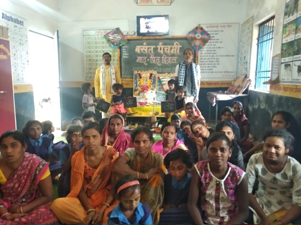 शासकीय प्राथमिक शाला भीखापाली में बसंत पंचमी एवं मातृ पितृ दिवस मनाया गया